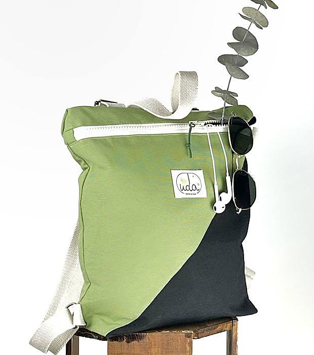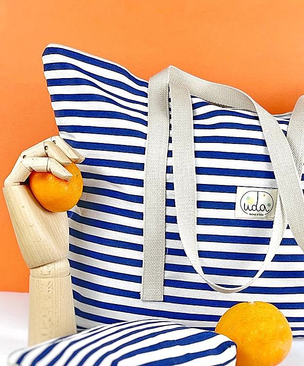 De sus artículos, únicos y limitados, destacan sus divertidas telas estampadas. Sus mochilas, neceseres, bolsos o 'tote bags' de rayas, triángulos, topos o cuadros están disponibles en una amplia variedad de animados colores, como el amarillo, el azul o el rosa. Forman parte de pequeñas colecciones que llevan el nombre de las mujeres de sus vidas. Es el caso de la línea 'Olivia', que es una buena amiga de Ander, o el diseño 'Argi' (luz en euskera), en honor a su abuela. «Este último lo cambiamos un poco. Mi amama se llama Mari Luz y no me imaginaba un bolso con este nombre», bromea.