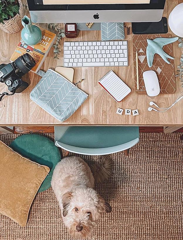 'Uda' (verano en euskera), nombre con el que bautizó la marca, nació en 2019. Detrás del proyecto se encuentra Ander, que elabora de forma artesanal las piezas. Y a su lado está Ricardo, su pareja, un santanderino de 41 años que por amor cambió Madrid por Bilbao hace tres años. En concreto, el cometido de este 'visual merchandising' -trabaja para una firma deportiva referente- es fotografiar los productos y elegir el tejido. La plantilla de esta pequeña empresa familiar se cierra con Rizo, el perro de la pareja. «Posa para nosotros y dirige el equipo», aseguran entre risas. Hoy, el traqueteo de la máquina de coser suena en su casa del Casco Viejo todas las tardes y fines de semana. Su zona de trabajo ha pasado de ocupar la mesa del salón a una habitación completa de la vivienda. Un lugar espacioso y acogedor lleno de las telas de algodón que compran en comercios locales. «Somos fieles clientes de Rafael Matías», indican.