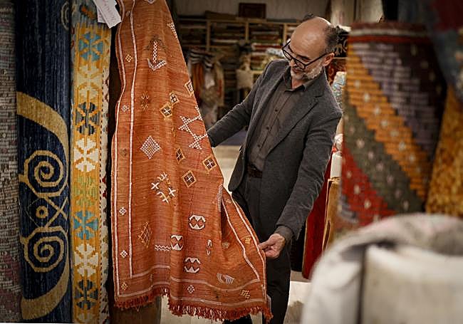 «Una alfombra es una obra de arte», dice convencido Moussa Bahraoui, que acaba de cumplir 20 años al frente de Alfombras Ámbar, ubicada ... en el número 50 de Colón de Larreategui. La tienda es uno de los pocos reductos en Bilbao donde se pueden comprar alfombras procedentes del norte de África, Asia y Europa, con piezas de Marruecos, Turquía, Pakistán, Afganistán y Egipto. El amor por las alfombras de Moussa, que ahora tiene 52 años, corre por sus venas desde su infancia, cuando en su Marrakech natal miraba fascinado cómo su abuelo entrelazaba hilos nudo a nudo, creando piezas que eran mucho más que alfombras: eran cultura, tradición y vida. También había heredado la pasión por el comercio, al que su familia se ha dedicado toda la vida, así que, de algún modo, siempre supo que su destino sería unir ambas pasiones.