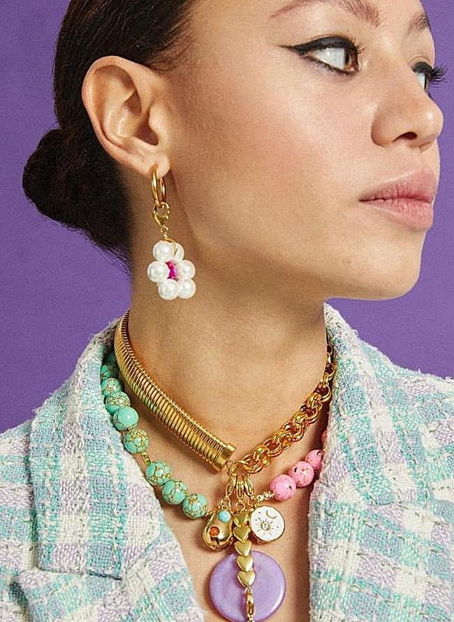 - Lulas Lulas: Firma colorida de pendientes y collares con toque desenfadado. Sus diseños atemporales y sus divertidos estampados la convierten en una propuesta de lo más acertada en el joyero. Ofrece desde diseños minimalistas hasta piezas XL. Las joyas se fabrican en talleres locales de Londres y Sevilla y en ocasiones, las hacen ellas mismas.