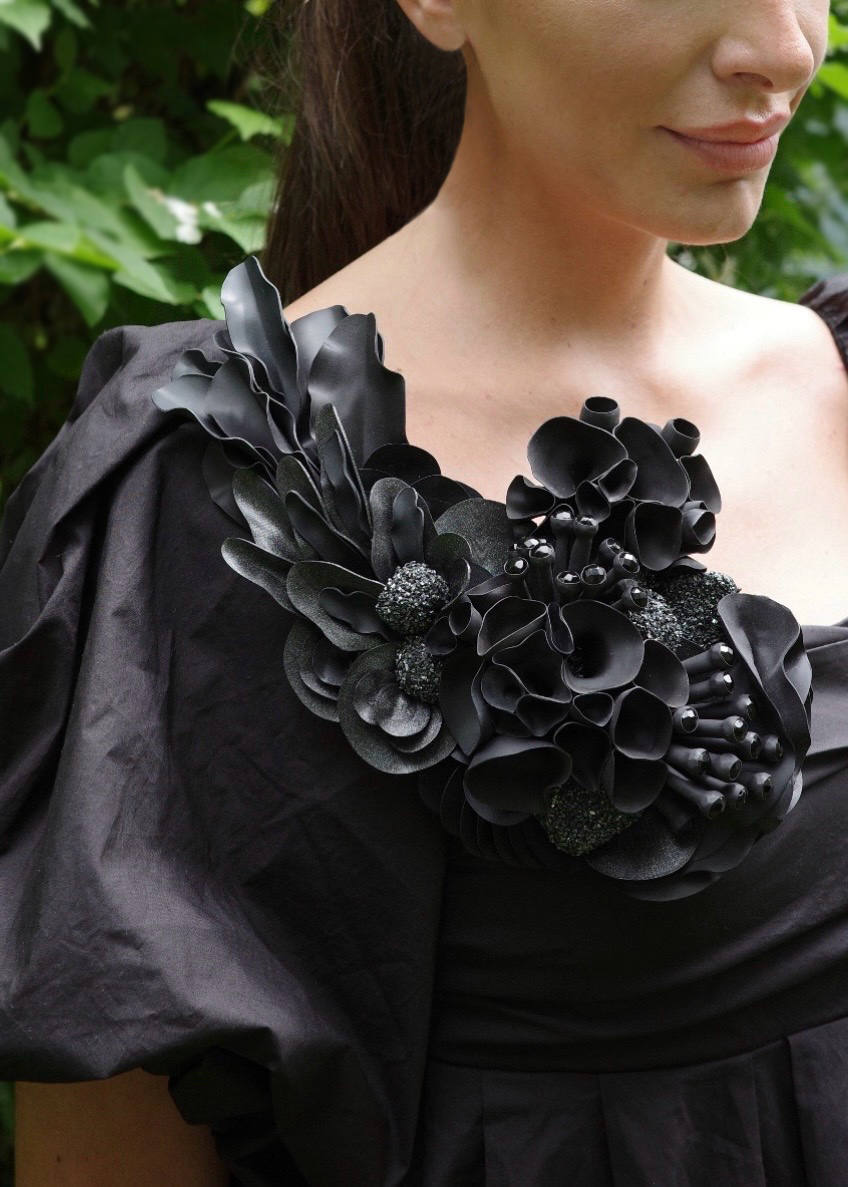 Amante de los perfumes, se pueden encontrar algunas de sus piezas en la perfumería Erlai, en Rodríguez Arias, además de en su cuenta de Instagram y en su página web. «Me gustaría colaborar con diseñadores vizcaínos para llevar mis creaciones a la pasarela y me encantaría lanzar diseños en formato top, como una especie de prenda joya». Sara no se cierra porque su firma es, en realidad, un laboratorio de ideas en permanente reflexión. «Me levanto por la noche mil veces, porque como no apunte todas las ideas que me vienen a la mente, no me puedo dormir», ríe. Hoy trabaja en una línea aún más artística y experimental, porque ante todo defiende su expresión personal y creativa. «Yo pensaba que a la gente estas piezas que hago les iban a parecer rarísimas, pero estan gustando mucho. Eso sí, cuando noto que estoy haciendo una línea más comercial, freno, porque pierdo libertad».