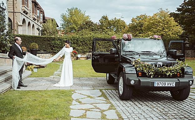 Esta novia tenía muy claro que uno de los días más especiales de su vida seguiría siendo fiel a su estilo, sencillo y elegante. Escogió para la ocasión un vestido de Paredero Quirós, la firma vasca que destaca por vestir a novias estilosas, cuidando hasta el último detalle. «Después de visitar varios atelieres, cuando entré en Paredero Quirós supe que yo salía de allí con el vestido que me iba a emocionar», afirma la getxotarra. Y así fue. De corte clásico, destaca la elección de la tela de crepe, de seda natural con base en raso, que hace que la caída de la tela sea espectacular y encaje perfectamente en la figura estilizada de la novia. El fajín de la cintura y la hilera de botones en la espalda aportan un aire sofisticado que hace el diseño más especial. «Quería lucir escote en la espalda, pero en Bilbao en octubre no te la puedes jugar, así que llevé uno, pero no muy pronunciado», cuenta Ania desde su casa en la playa de Arrigunaga. Esta novia tenía las ideas muy claras para ese día, llevar velo era una de ellas. En cuanto lo vio, se enamoró. Era de tul con flores bordadas en hilo de algodón en color natural y escondía la sencilla trenza que llevaba la novia para recoger su melena. Para los zapatos, optó por la firma española Roldán.