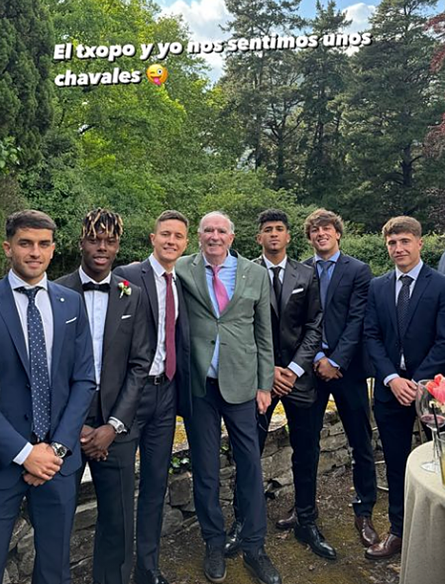 Ya surgieron en la preboda. Se vio en una foto colgada por Beñat Prados y compartida por varios de sus compañeros. Y este sábado, ya en el lugar en el que se iba a celebrar el convite, ha sido el hermano del novio, Nico, que tiene que incorporarse a la selección española, el que ha hecho este guiño.