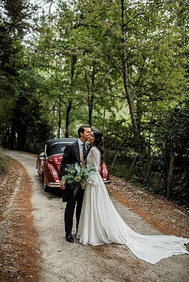 La historia de amor de Laura y Bari comenzó como un juego entre dos adolescentes. «Nos conocimos en Bilbao por unos amigos en común cuando teníamos 16 años. Él me pidió salir y yo le contesté que solo aceptaría si era para estar más de dos meses juntos». La promesa se cumplió con creces y de aquello ya han pasado diez años. Ahora, presumen de estar felizmente casados. Su boda tuvo lugar el 6 de octubre de 2018 en el Santuario de la Encina, en Artziniega, un templo de estilo gótico reconocido como monumento histórico artístico, en el que destaca un retablo de principios del siglo XVI y estilo hispano-flamenco digno de admirar. Para la celebración, se trasladaron al municipio de Gordexola, un entorno idílico y natural que recrearon en los jardines del Palacio de Ubieta. Esta conocida finca tiene catorce mil metros cuadrados y cuenta con un imponente edificio neoclásico de 1829, donde tuvo lugar el banquete, el baile y la fiesta posterior.