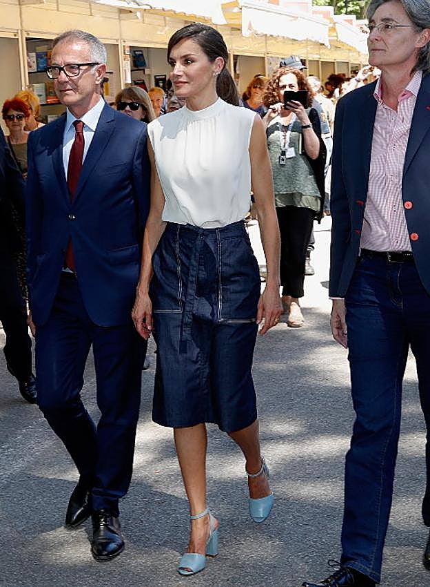 Doña Letizia retoma una de sus citas ineludibles del calendario oficial tras su ausencia del año pasado, en la que fue sustituida por la infanta Elena. De este modo, ha sido la encargada de inaugurar la 78º edición de la Feria del Libro de Madrid, celebrada en el céntrico Parque del Retiro. Como ha sucedido en cada edición, la Reina ha tenido tiempo para recorrer las casetas e interesarse por las últimas novedades literarias, acompañada por el ministro de Cultura, José Guirao, y la alcaldesa de Madrid en funciones, Manuela Carmena. Esta vez, y acorde con las altas temperaturas que se han instalado definitivamente en la capital, ha estrenado un veraniego look en el que ha puesto el foco de atención en unas sandalias de tonos pastel que ahora podrás encontrar en una tienda efímera en Bilbao.