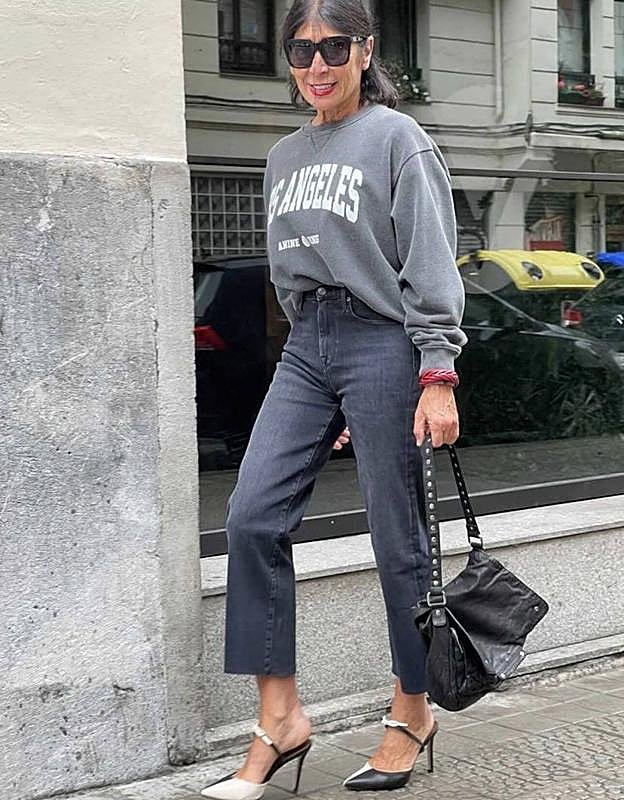 Ya sea porque los tiempos, las actitudes o las formas de pensar han cambiado, en la calle cada día se ven menos mujeres de más de 50 años con la estética de antaño. Solo hay que echar la mirada atrás. Ahora, ni prendas sobrias, ni colores apagados, ni cortes tradicionales. Esta nueva generación de 'cincuentañeras' ha evolucionado hacia un estilo cada vez más juvenil. Sigue las tendencias de moda y se atreve con piezas que antes se consideraban inapropiadas para su edad, como los 'jeans' desgastados o las prendas de 'crochet'. Y así desmontan los prejuicios que la sociedad genera en torno a su estética. Un gran avance en el que la ropa no tiene edad, con excepción de los tirantes y las minifaldas, a juicio de Pepa Aurrekoetxea. «Y fíjate que las he llevado cortísimas cuando era más joven, pero ahora, a mis 58 años, no procede», cuenta esta experta en moda de Algorta. En este sentido, proclama las camisetas y la silueta 'oversize' como claves rejuvenecedoras. Uno de sus mantras más repetidos no está relacionado con la edad, sino con el tamaño de la ropa: «la talla solo es un número. Siempre es mejor coger una más y que nos quede bien a que nos apriete y estemos a disgusto».