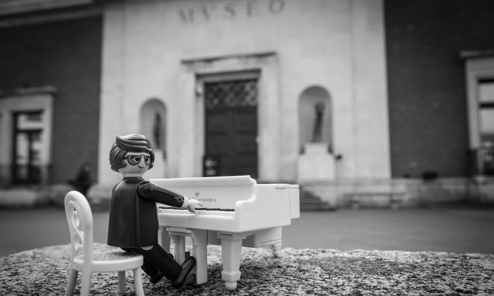 Con el proyecto, que surgió de forma casual en el año 2016, Sara aúna sus tres grandes pasiones: la fotografía, Bilbao y los artículos en miniatura. «Un día encontré varios Playmobil en el suelo de la calle. Me dieron pena y me los llevé a casa. Los lavé y empecé a hacerles este tipo de fotos», recuerda. Su nueva afición le llevó a desempolvar las piezas con las que jugaban sus hermanos de pequeños. 'Clicks' de otra época que sus padres aún guardaban en casa como si de un tesoro se tratara. «Son mis piezas favoritas, porque fueron de los primeros que sacaron al mercado», confiesa.
