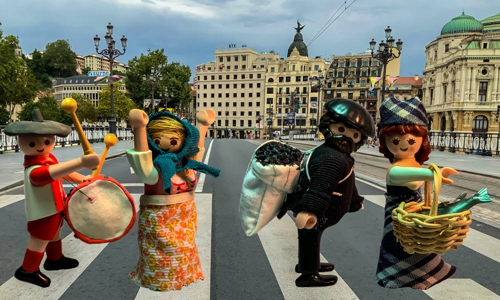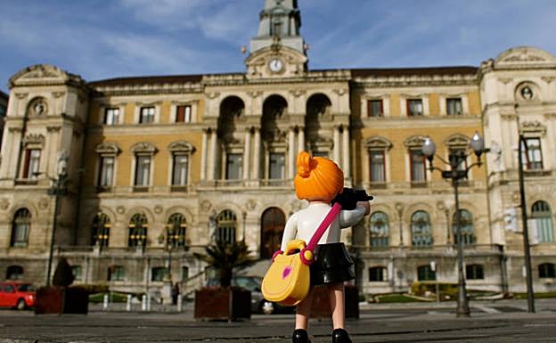 En el año 1973, el ingeniero alemán Hans Beck creaba los juguetes Playmobil. Divertidas piezas de plástico que nacieron bajo el cliché de ser un juguete para niños que a las niñas no les debía gustar. Aquellos críos, que empezaron a llenar sus manos, bolsillos y cajas de juguetes con estos seres en miniatura crecieron, y pese a ello, no abandonaron sus 'playmobils'. De hecho, sus colecciones nunca han parado de crecer. Otras personas se aficionaron a recopilar estos pequeños personajes en la edad adulta. «Nunca jugué con ellos», asegura Sara Moreno. Hoy esta bilbaína dedica su tiempo libre a captar la esencia de la ciudad que la vió nacer hace 38 años con los 'clicks' de Playmobil. «Mis personajillos se convierten en esos bilbaínos amables e inigualables que hacen que la villa huela a hogar», cuenta.