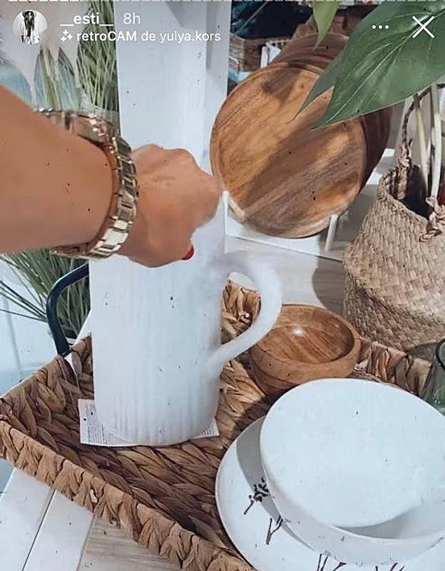 Y durante la visita, la 'influencer' vizcaína se fue enamorando de más artículos: unas perchas doradas – «de estas me tienen que poner un palé para llevar porque son la caña»–, una bandeja de mimbre «ideal»...