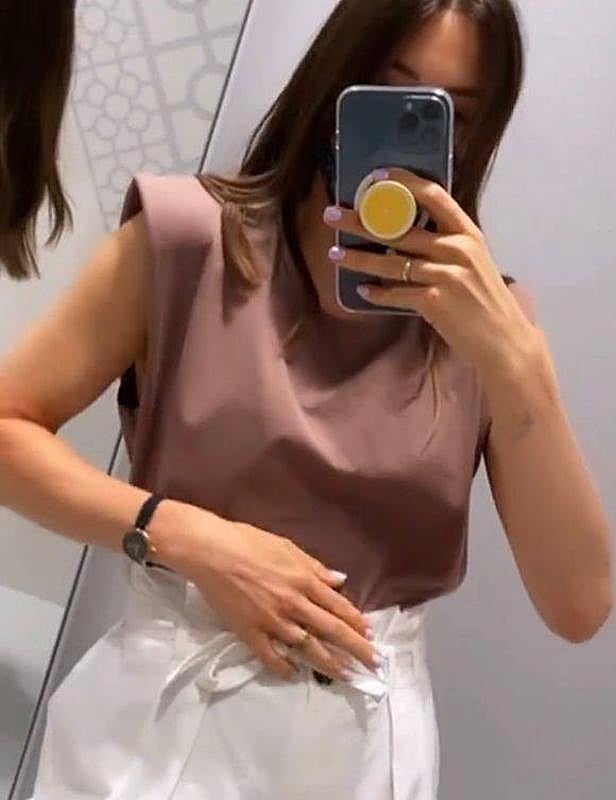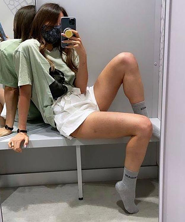 Tanto le gustaron los pantalones cortos de su primera opción, que no dudó en combinarlos también con una camiseta con hombreras y con otra verde de la sección de hombre.