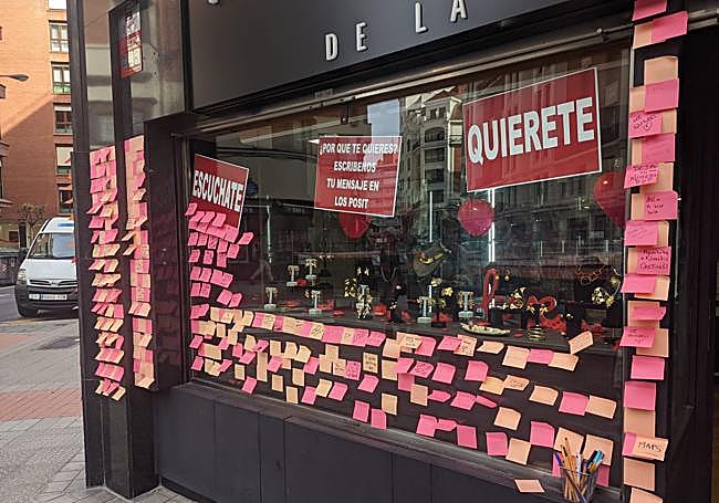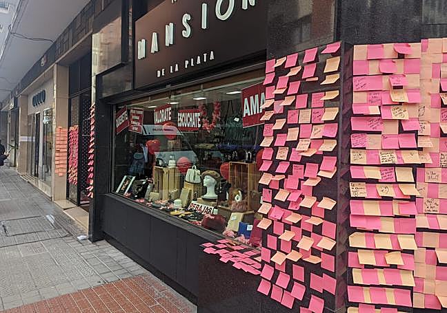 La idea de adornar los escaparates con post-it se le ocurrió a Anakoz Merikaetxebarria, encargado de la joyería Mansión de la Plata, en el número 22 de la calle Rodríguez Arias. «No quería que San Valentín se convirtiese en un día para hacer regalos, sino en una demostración de amor propio», cuenta este profesional, que ha colgado más de 4.000 notas. No dudó en sumarse a esta original iniciativa su compañera Miren Gotzone Almanchel, que regenta la tienda de moda Sas, que está justo al lado.