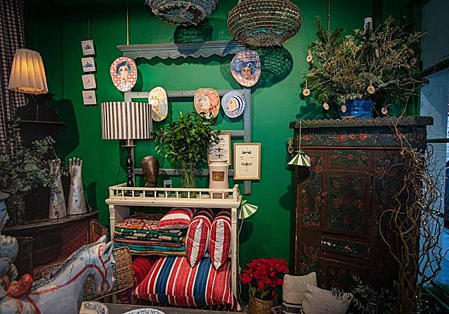 Bárbara se autodefine como «doña mezclas». El suyo es un «estilo ecléctico en el que todo encaja»: «Me encantan las antigüedades rústicas, atípicas, sencillas, un poco decadentes, pero con mucho rollo y que pegan en un piso en plena ciudad». Además, siente debilidad por los artículos únicos hechos a mano, así que colabora con varios artistas para ofrecer sus creaciones. Sorprenden desde los originales platos con rostros de mujeres que elabora una creadora de Plasencia hasta las lámparas inspiradas en carruseles antiguos que crea una artista de Normandía. «¡Me encanta!», lanza desde fuera, sin llegar a entrar, un hombre de unos sesenta años, con pantalones de cuadros y gafas amarillas. «¡Muchísimas gracias! Está invitado a pasar», responde Bárbara, que lamenta que mucha gente se queda mirando el escaparate sin atreverse a rebasar la puerta. «No quiero que sientan la presión de entrar y comprar algo. Esta tienda está hecha para curiosear, sacar, enredar, preguntar... para pasar un buen rato y disfrutarla», concluye esta emprendedora que nunca rompió el hilo de curiosidad que conduce hasta su fantástico refugio verde.
