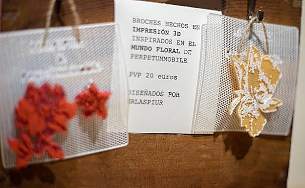 En el espacio, también se pueden encontrar los broches impresos en 3D que ideó Maria Romero Laspiur, mente creativa de MR Laspiur, inspirados en el característico estampado de la firma bilbaína. «Hicimos una colaboración. También diseñó unos pendientes que se pueden encontrar en nuestra página web», añade Mireia. En su 'stand', también ofrecen productos de otras firmas: desde termos hasta ropa sostenible. Unos proyectos que siguen la filosofía de la marca: «sentido y sostenibilidad». El precio de sus artículos va de los 20 euros a los 120.