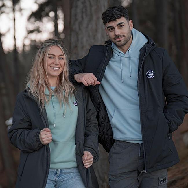 Antes de aquello, Unai había participado en su primera feria en Elorrio, un momento que recuerda con especial cariño. «Fue un antes y un después. La gente se acercaba, tocaba las prendas, escuchaba la historia y conectaba con el proyecto. Me animó muchísimo a seguir, a ampliar el catálogo y a profesionalizar la marca», recuerda. Así, tras empezar solo con camisetas, el universo de Arima se ha ido ampliando hasta lo que es hoy en día, con numerosas propuestas como sudaderas, chamarras, camisas, parkas, bañadores, pantalones cortos, gorros, viseras, gorras... Las mayoría de las prendas están confeccionadas con algodón 100 % orgánico y poliéster reciclado, siempre pensando en reducir al mínimo el impacto ambiental. «No se trata solo de hacer ropa bonita, sino de hacerla bien. Queremos que nuestras prendas duren, que se sientan especiales y que la gente sepa que al comprarlas está apoyando un proyecto local y sostenible».