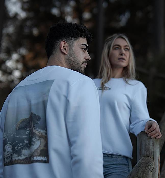 Otra de las señas de identidad de la marca son los estampados que lucen muchas de sus camisetas y sudaderas, con imágenes de lugares emblemáticos del País Vasco como la costa de Barrika, el monte Udalaitz o San Juan de Gaztelugatxe, uno de los diseños que más éxito ha tenido. Durante estos años, la respuesta del público ha sido inmejorable. «Recibimos muchos ánimos de la gente. Cuando tocan las prendas, suelen decirnos: 'Se nota que es bueno, que está hecho con cariño'». Eso es lo que más me motiva. También me emociona cuando personas que nos compran en ferias nos envían fotos desde lejos vestidos con nuestras prendas», confiesa Unai. Además de la colección habitual, Arima ofrece prendas adaptadas a cada estación y lanza de forma puntual ediciones limitadas, muy valoradas por sus clientes.