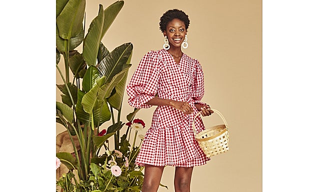 El estampado vichy, que también es tendencia durante este año, es perfecto para vestidos de manga abullonada. Atrévete con este diseño de inspiración campestre, escote cruzado y falda de estilo pareo con detalle de volantes.