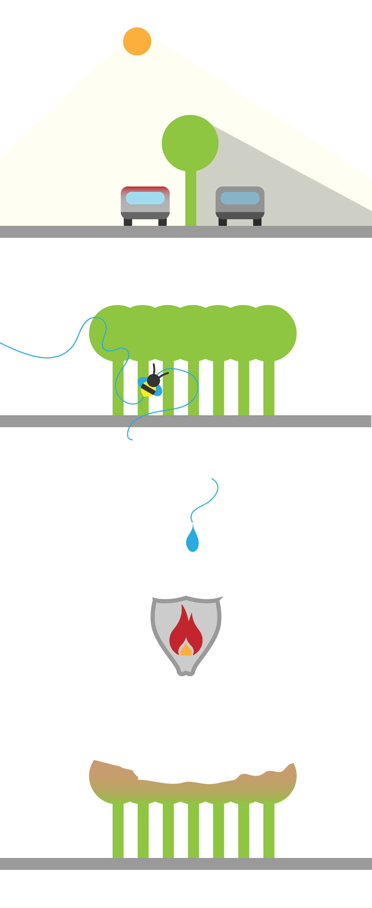 «Los árboles y arbustos no solo brindan sombra, también refrescan activamente el aire. Cuando hay agua disponible para que transpiren a través de la fotosíntesis, son capaces de mover agua fría desde el suelo hacia la atmósfera y enfriar el aire bajo sus copas. Además, lo hacen gratis, en comparación con los costosos sistemas de aire acondicionado en los que invierten algunos municipios, mucho menos efectivos para mitigar el efecto de isla de calor urbano (UHI, por su sigla en inglés) –fenómeno que se produce en las ciudades, donde las temperaturas son más altas que las áreas circundantes por la actividad humana–», declara Lenoir.