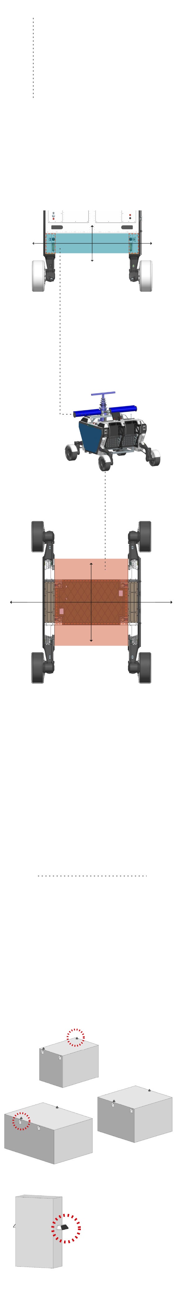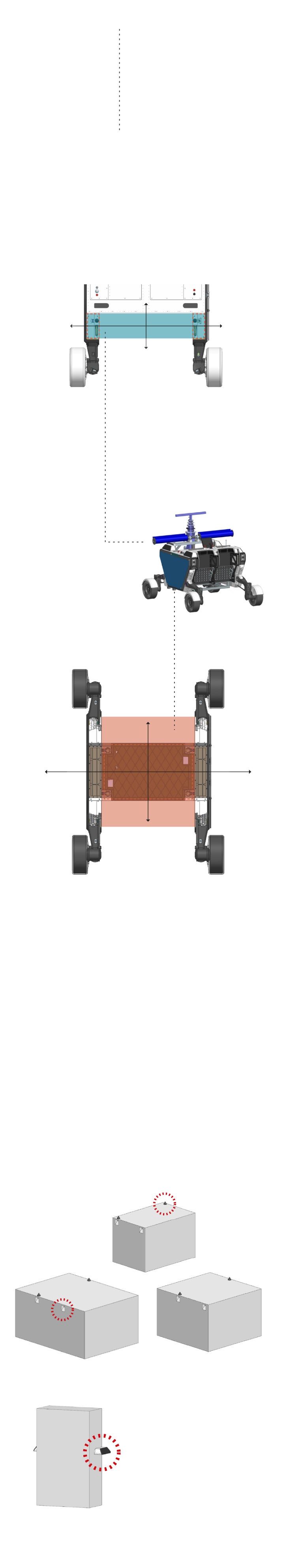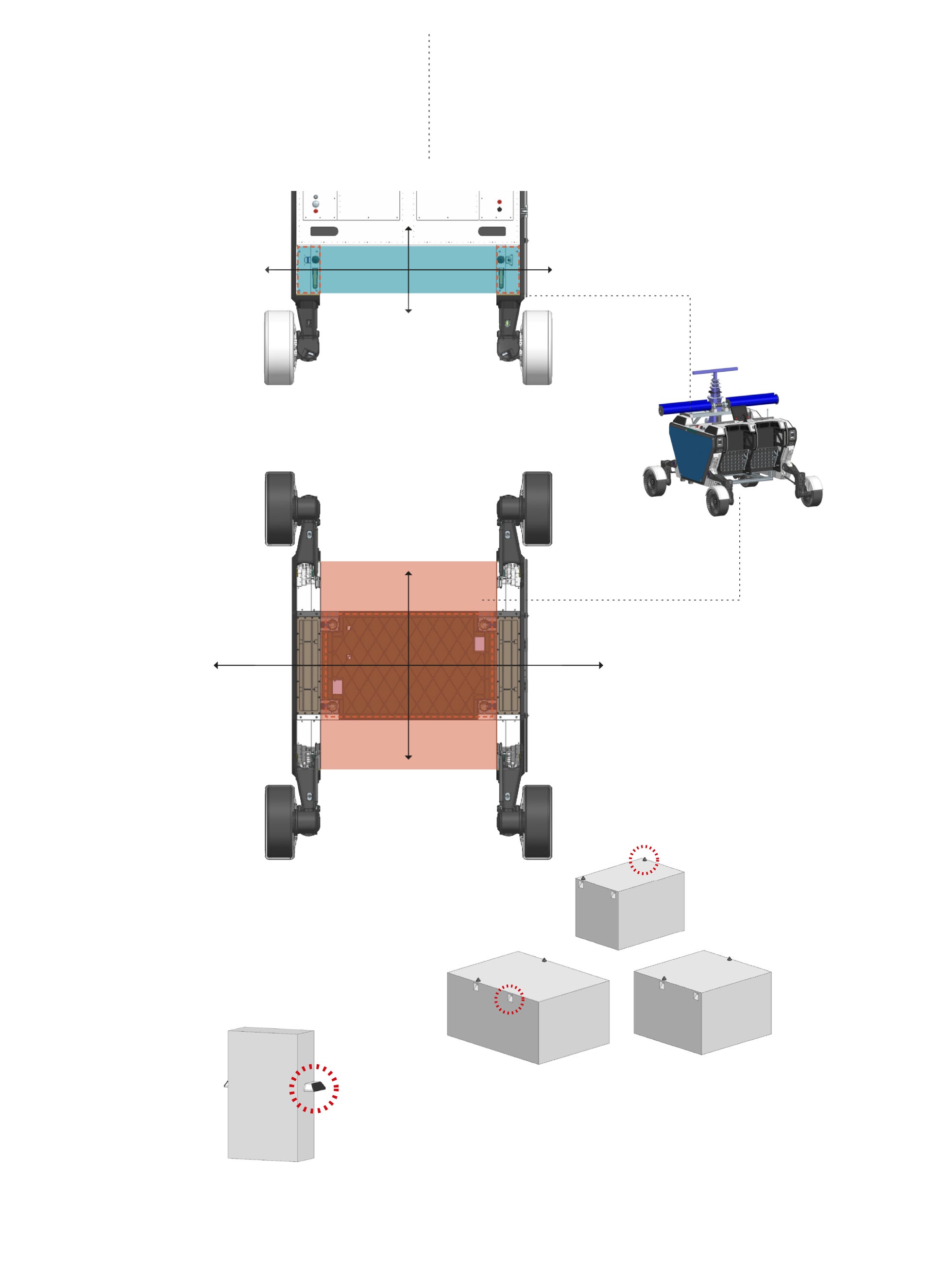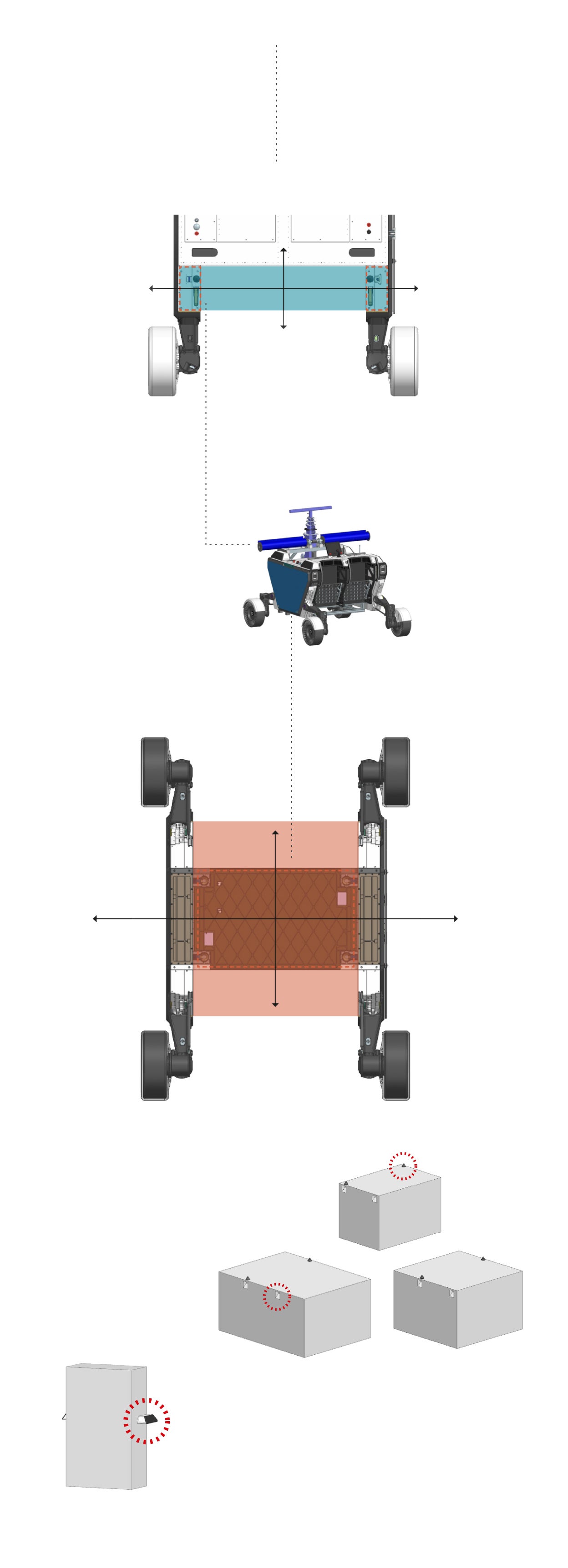 FLEX es capaz de soportar una carga de hasta tres veces su peso y transportarla tanto en su parte superior como inferior. Su chasis modular se ensancha y estrecha para ajustarse al volumen de los contenedores que moviliza y también se mantiene siempre equilibrado para adaptarse al terreno irregular y evitar que el rover vuelque.