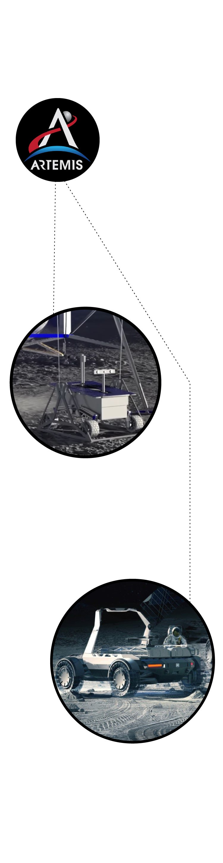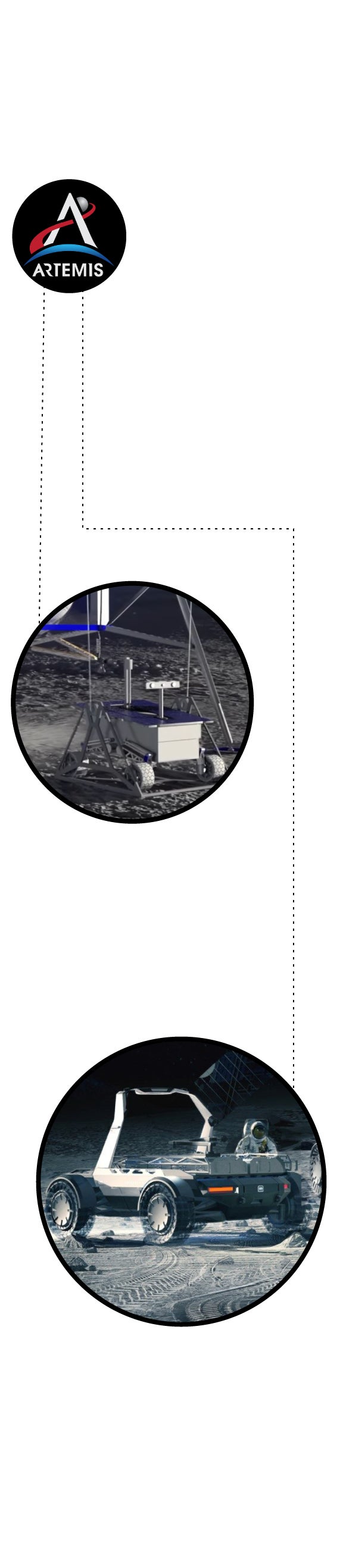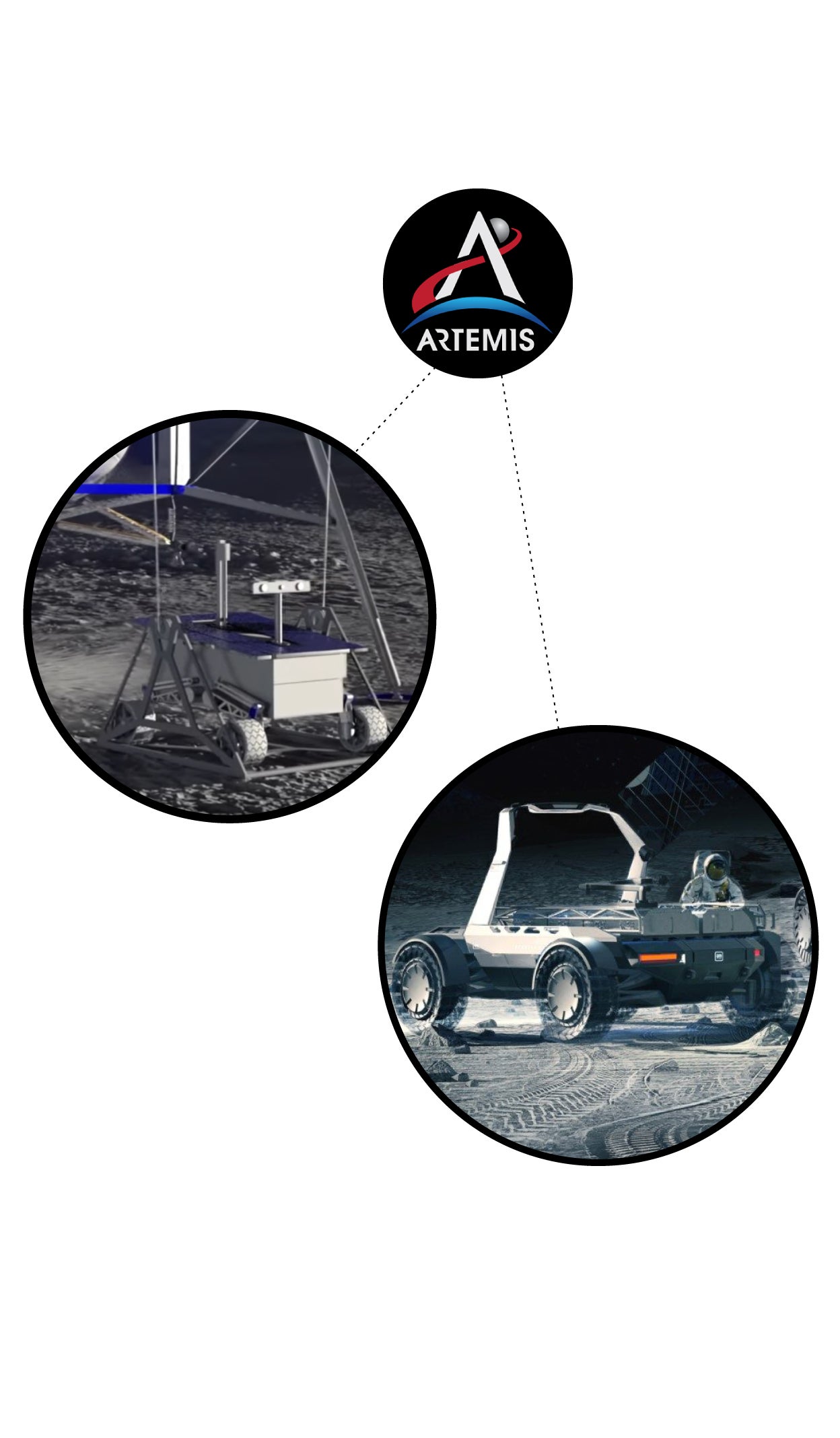 Llevar un 'coche' a la Luna es una carrera de fondo en la que FLEX no está solo. Al contrario, se enfrenta a una dura competencia. En el marco del Programa de Vehículos de Terreno Lunar (LTV) la NASA tiene contratos con seis compañías, además de Astrolab, que compiten entre sí para ver cuál creará el módulo de aterrizaje lunar más viable para la misión Artemis 2025.