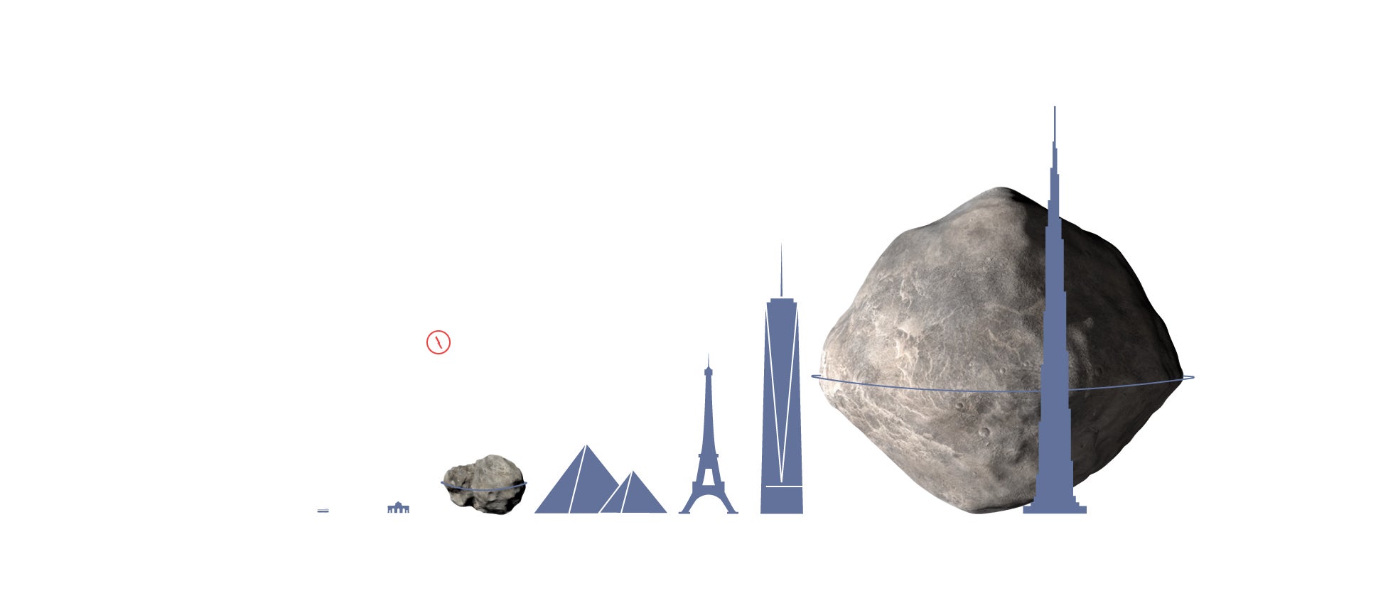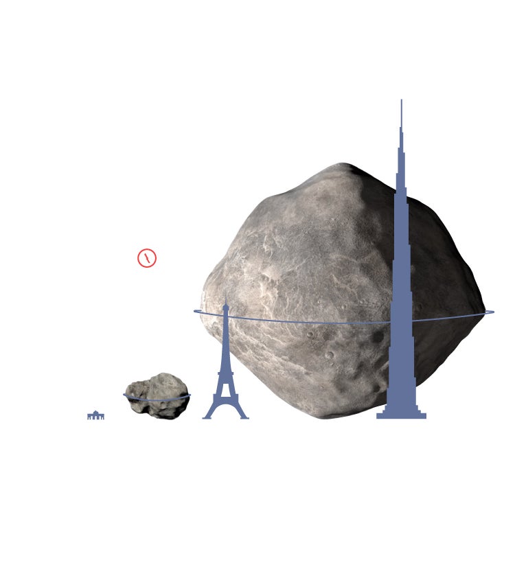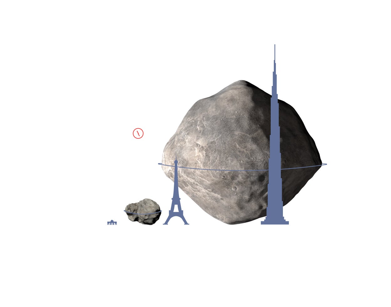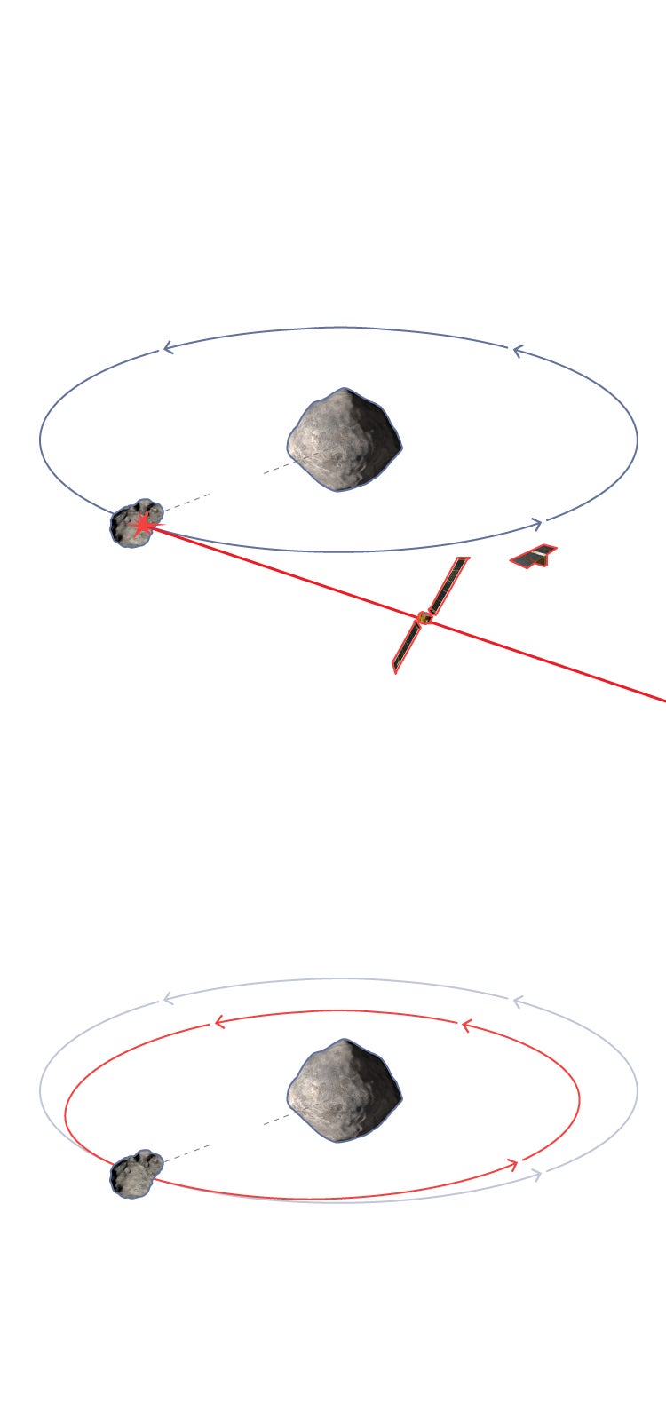 1 El asteroide Dimorfo orbita Dídymo a una distancia de 1,2 km de centro a centro