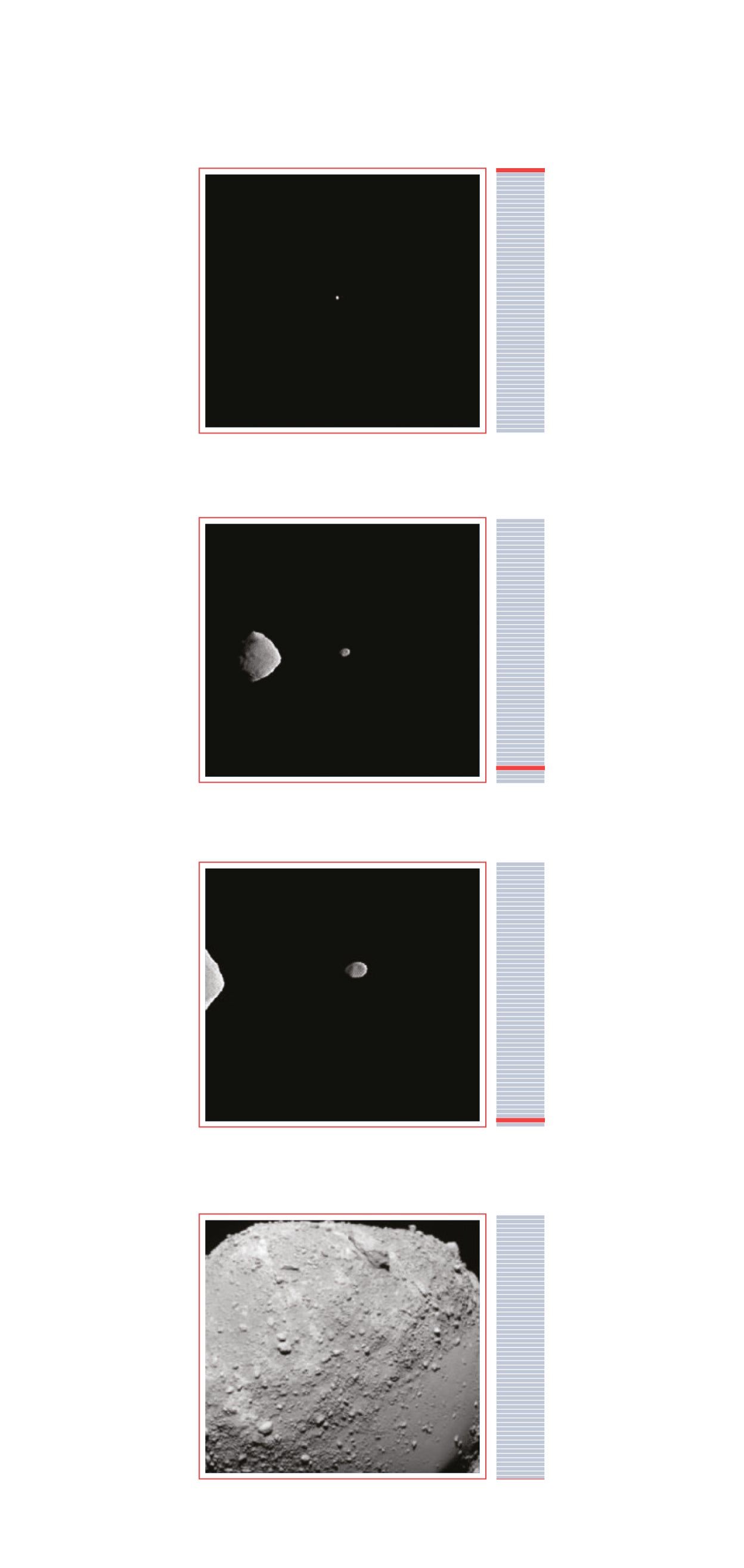 Lo que no se puede predecir con exactitud es cómo será la colisión. Se sabe muy poco sobre la composición de Dimorfo, y nuestra comprensión de la física de impacto relacionada con los asteroides se basa en experimentos de laboratorio realizados en la Tierra y en los datos proporcionados por la misión japonesa Hayabusa2 sobre el asteroide Ryugu, de 900 metros de diámetro. «El verdadero reto tecnológico de DART es encontrar e impactar contra un asteroide tan 'pequeño', del cual tenemos muy poca información, en medio del espacio, a gran velocidad. De hecho, no seremos capaces de distinguir Dídymos de Dimorfo hasta una hora antes del impacto. Para ello, DART está provisto de un sistema de navegación autónoma y de la cámara DRACOS. Las imágenes que se van a retransmitir en vivo son precisamente las que DART tome durante esa última hora antes de colisionar», afirma Chabot.