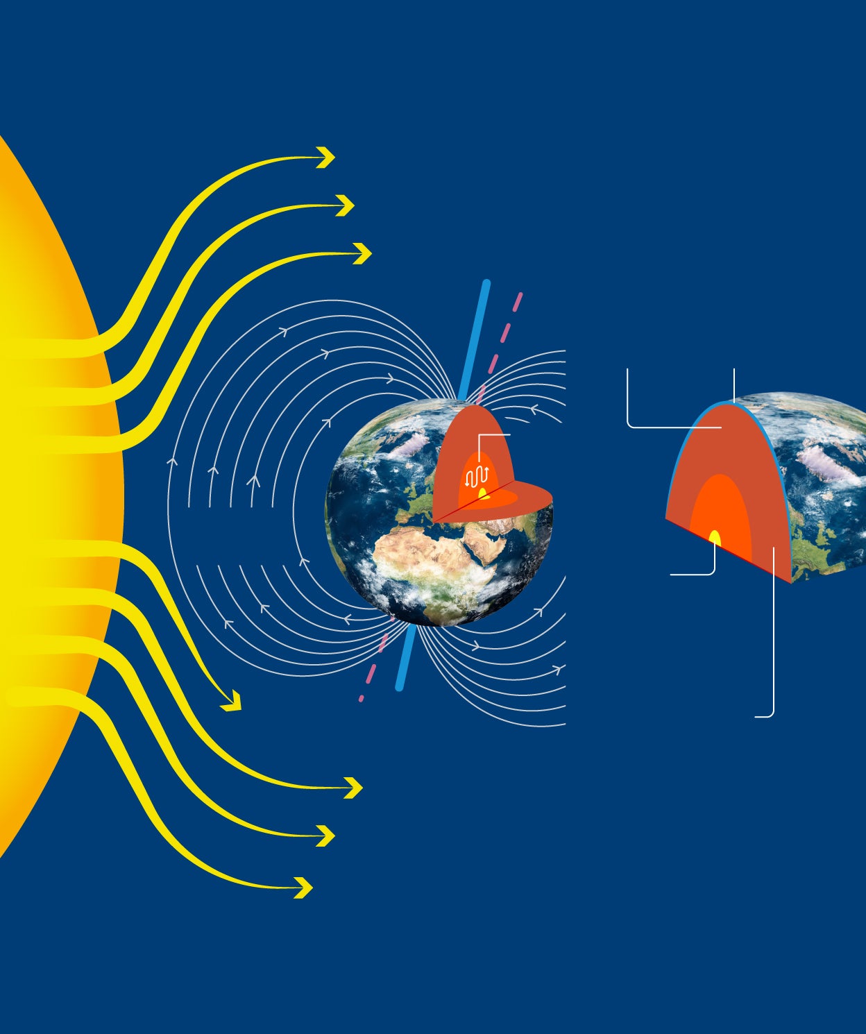 Una posible explicación es que se esté produciendo una lucha entre dos grandes fuerzas. Por un lado, el campo magnético de la Tierra, que se crea en el núcleo exterior líquido y que está estrechamente ligado a la presencia del núcleo interno terrestre, hace que este gire. Por otro, ese impulso es contrarrestado por el manto, cuyo campo gravitacional ralentiza dicho movimiento de rotación. Así, los investigadores sostienen que hay vínculos físicos entre todas las capas de la Tierra, desde el núcleo interno hasta la superficie, y que ese tira y afloja hace que el núcleo interno gire hacia adelante y hacia atrás en un ciclo de aproximadamente 70 años.