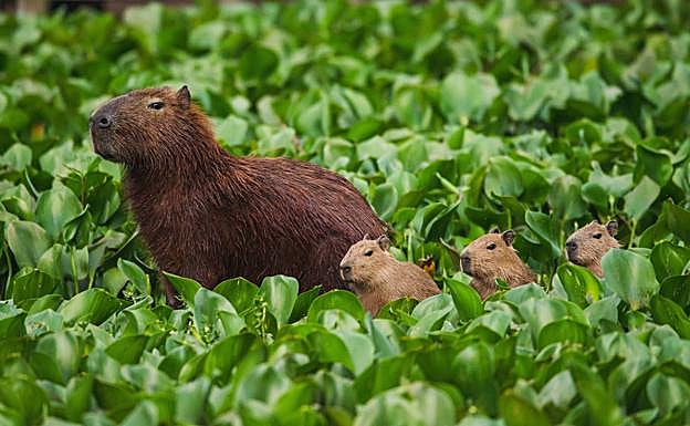 El capibara es impresionante de por sí, un roedor que puede alcanzar los 64 centímetros de altura en la cruz y un peso de 66 kilogramos, cuando los roedores son habitualmente muy pequeños y como máximo del tamaño de un conejo grande. Este animal, que vive en América del Sur, tiene ancestros que, si bien eran de gran tamaño, como el 'Josephoartigasia monesi' descubierto en Uruguay y que tiene una antigüedad de entre 2 y 4 millones de años. También en este caso, salvo por el tamaño, el fósil del ancestro es casi idéntico al animal que hoy convive con nosotros y cuyo único pariente cercano y miembro del género 'Hydrochoerus es el capibara menor'.