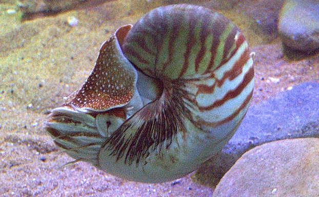 Tan conocido como para darle nombre a uno de los primeros submarinos reales, diseñado en 1800, al ficticio que inmortalizó Julio Verne en 1870 en su novela '20.000 leguas de viaje submarino' y al primero impulsado por energía nuclear en 1954, el nautilus es un molusco cefalópodo emparentado con pulpos, calamares, sepias y otros, pero a diferencia de éstos tiene una dura concha, muy vistosa, blanca con rayas marrones, que le permite eludir a los depredadores y lo ha hecho incluso antes de que aparecieran los cangrejos cacerola, pues su origen data de hace 500 millones de años, cuando llegaba a ser de un impresionante tamaño de hasta 10 metros de diámetro. Hoy, mucho más pequeñas, las seis especies de nautilus que aún viven en los océanos Pacífico e Índico son muy parecidas a sus ancestros.