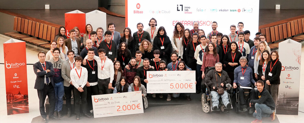 El pasado viernes tuvo lugar en el Edificio Ensanche el evento final del proyecto ‘Bilbao Accesible’. Una iniciativa puesta en marcha por el Ayuntamiento de Bilbao, Google Cloud y la plataforma de innovación abierta INNOLAB Bilbao, que se lanzó el pasado mes de octubre con un claro objetivo: la identificación y captación de talento y el fomento del emprendimiento y la innovación en Bilbao. Su propósito es ayudar a mejorar la accesibilidad del entorno urbano de la ciudad a través de la implementación de herramientas digitales que ayuden a ofrecer igualdad de oportunidades de acceso para todos/as los/as habitantes, turistas y visitantes de Bilbao.