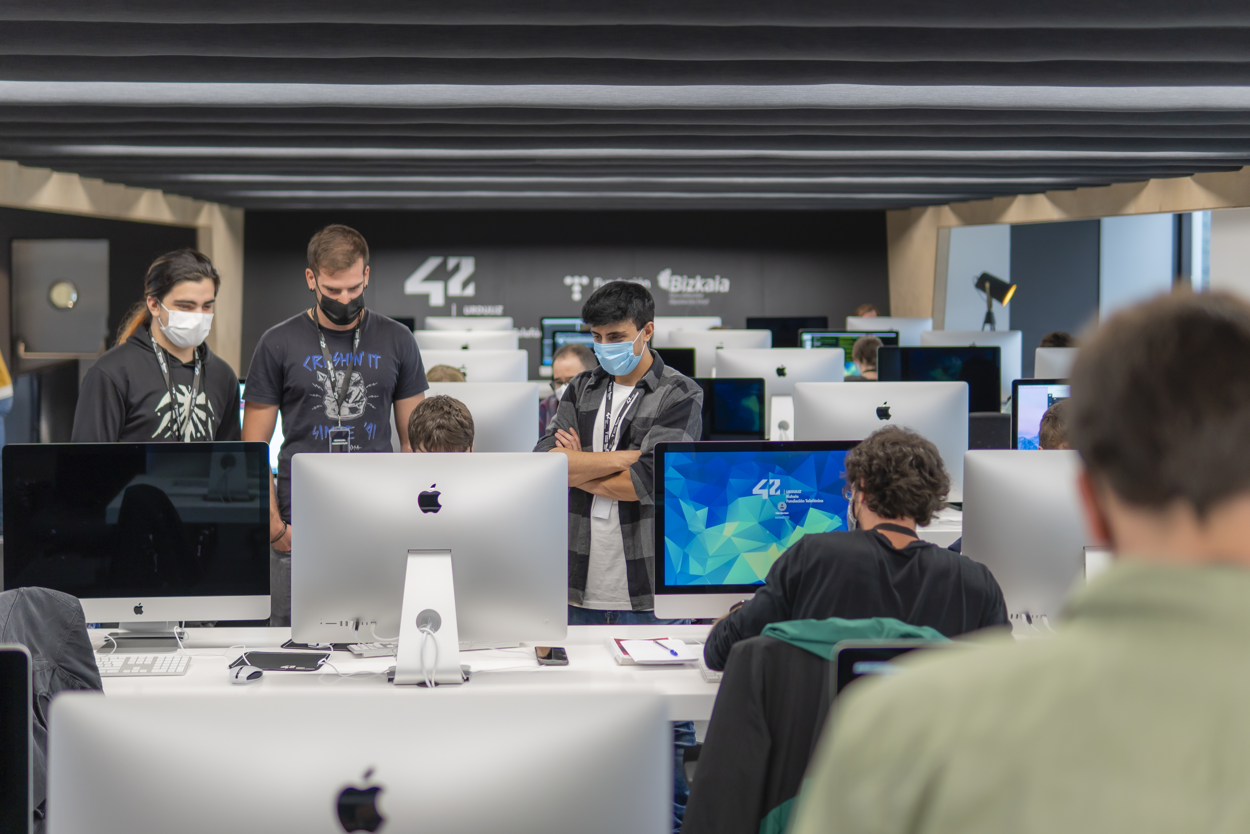 «42 es un proyecto global». Hoy en día hay 35 campus activos en 22 países como Alemania, Países Bajos, Portugal, Abu Dabi, Marruecos, Japón, Australia, Brasil… Es decir, que un estudiante de Urduliz «no está solo conectado a nuestro espacio formativo sino que puede acceder a una formación global en la que está viendo las necesidades del mercado laboral en todo el mundo, ya que hay un equipo de 30 personas en la red internacional entre campus que está continuamente pensando en las necesidades de los mercados laborales para implementarlas dentro de la formación. De tal manera que somos capaces de hacer evolucionar nuestros contenidos mucho más rápido que la educación tradicional», apunta el responsable de 42 Urduliz.