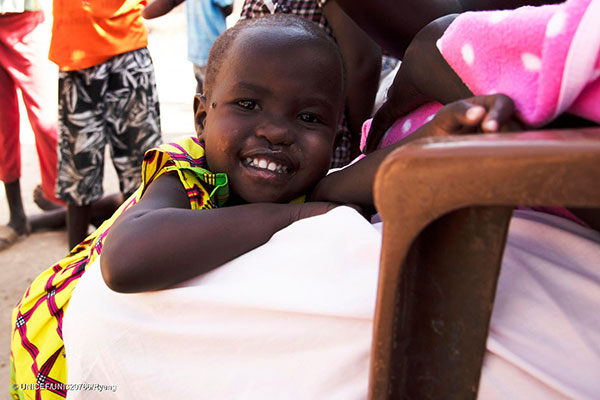 A miles de kilómetros de distancia, en Sudán del Sur la pequeña Adut de 2 años vuelve a jugar y sonreír tras recibir tratamiento terapéutico nutricional. Con tan solo 14 meses de vida entró en el programa de nutrición de Unicef en Aweil con signos de desnutrición aguda y enferma de malaria. Tras ocho semanas, Adut pudo volver a andar de nuevo, ganando fuerza y musculatura en sus piernas. Ahora corre y juega con otros niños y niñas de su edad y es un claro ejemplo de cómo los alimentos terapéuticos listos para su consumo salvan vidas.