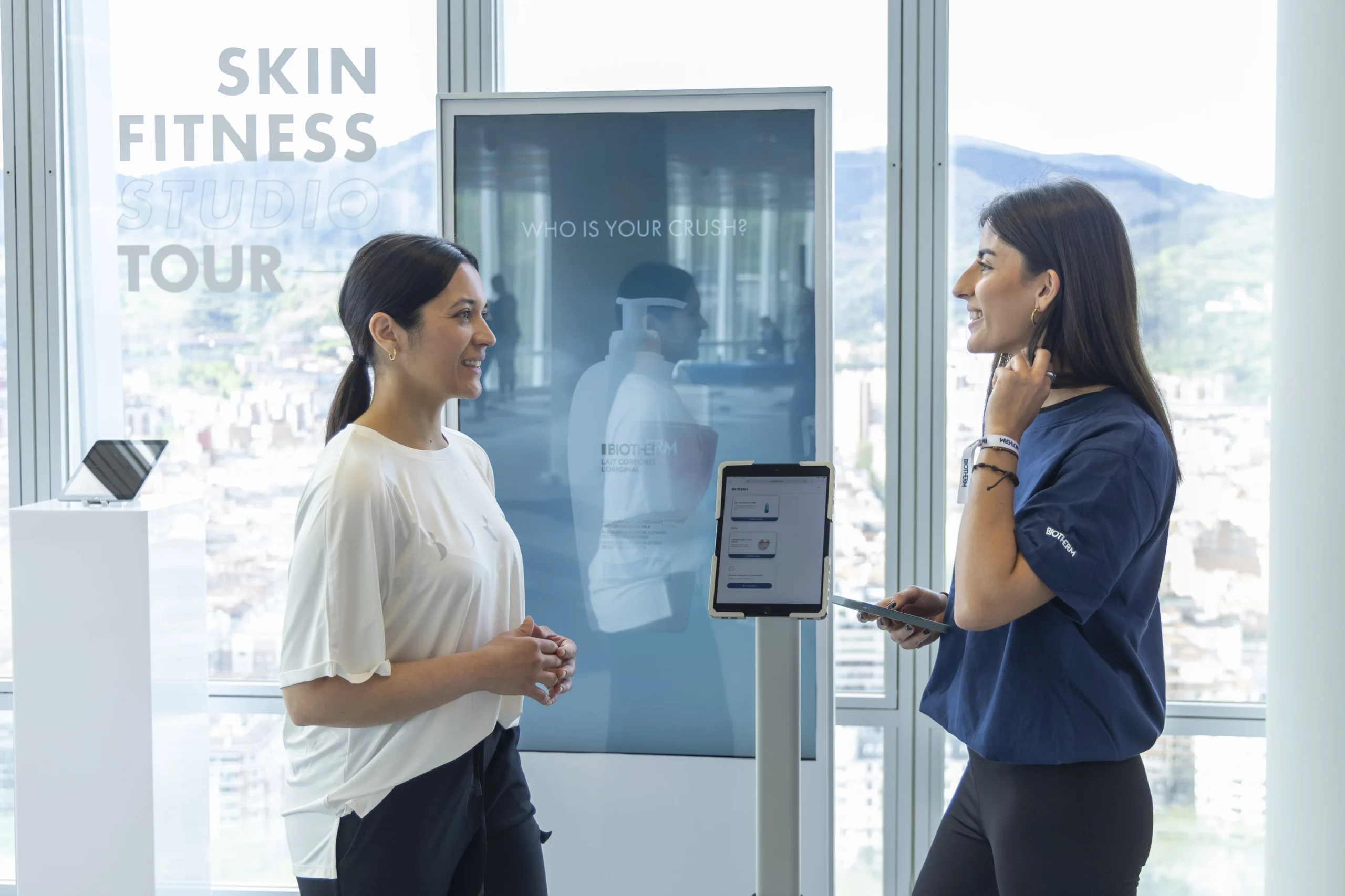 “Con esta experiencia queremos aunar dos mundos aparentemente distantes, como son el skincare, el cuidado de la piel, y el mundo del fitness”, explicaba Mauricio Cruz, director de Marketing de skincare de Biotherm en el acto de apertura del evento. “Cuando nos ejercitamos”, continuaba, “nuestra piel sufre. Al practicar deporte al aire libre, queda expuesta a diferentes factores dañinos: rayos solares, radicales libres, frío viento, contaminación… Y al realizar deporte indoor, aparece la sudoración y con ella proliferan bacterias, granitos, rojeces o irritación. Nuestra misión es invitar a esta comunidad activa a tener una piel en forma durante más tiempo”, concluía. Y este es, precisamente, el objetivo de una serie de experiencias sensoriales que Biotherm llevará a lo largo del año a distintas ciudades. Bilbao ha sido la primera, seguirán Madrid, Valencia y Málaga. “Hay una frase que lo resume todo”, explicaba Mauricio. Un lema dedicado a todos aquellos que quieren aunar el bienestar físico que viene de la mano del ejercicio, con un cuidado de la piel: You work out, we work in. “¿Y qué significa este anglicismo?”, se preguntaba Mauricio Cruz antes de dar él mismo la respuesta: “Que mientras tú ejercitas y entrenas tu cuerpo, nosotros ejercitamos tu piel”.