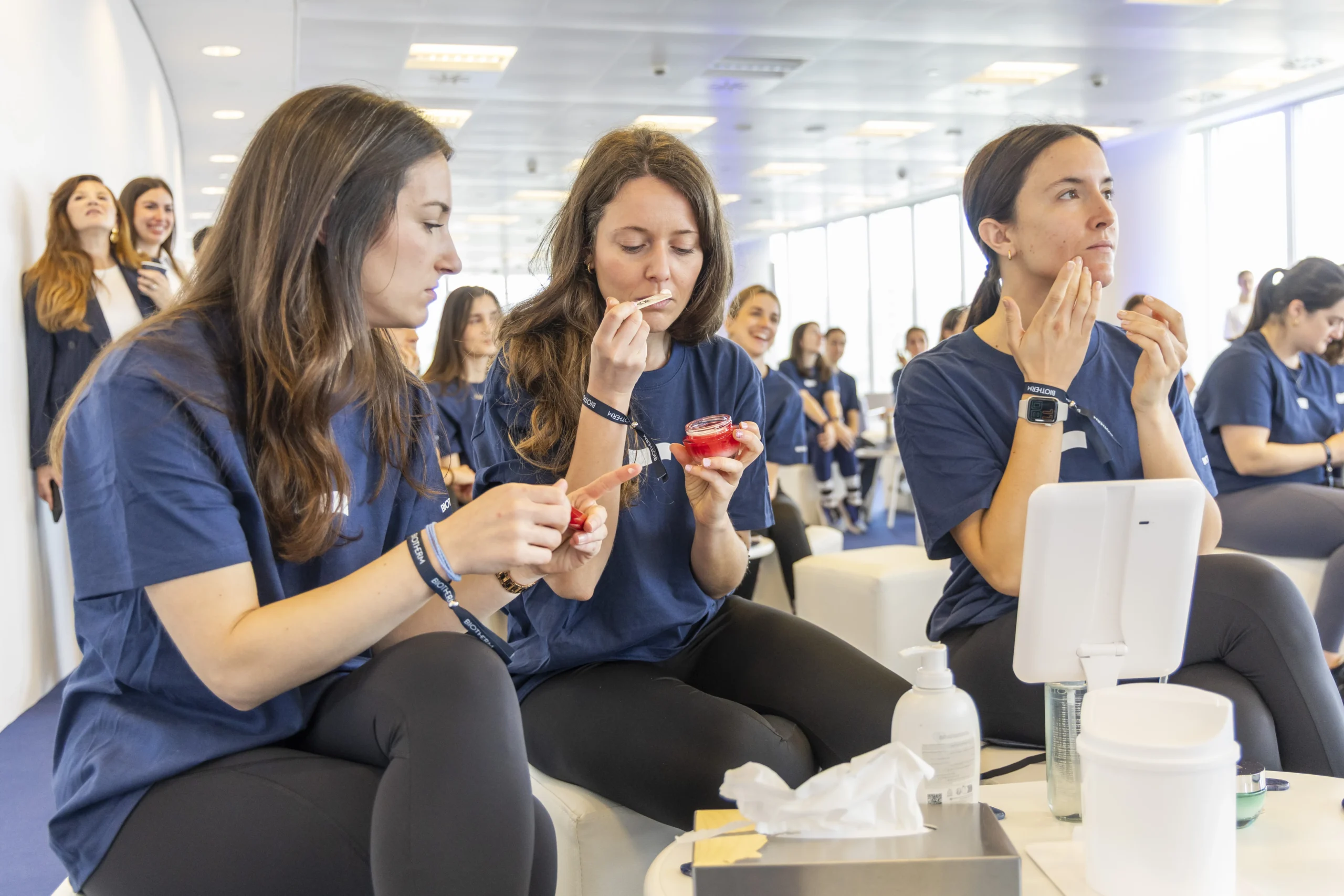 A las 9:45 de la mañana comienzan a entrar, puntuales, a la planta 29 de la Torre Iberdrola de Bilbao. Son 78 chicas -y un chico- ataviadas con mallas de yoga y calzado deportivo, cuyas edades rondan mayoritariamente entre los 25 y 45 años. En apenas 48 horas, agotaron las entradas para el primer evento del Skin Fitness Studio Tour de Biotherm, cuya primera edición se celebró el pasado sábado 5 de abril en la capital vizcaína.