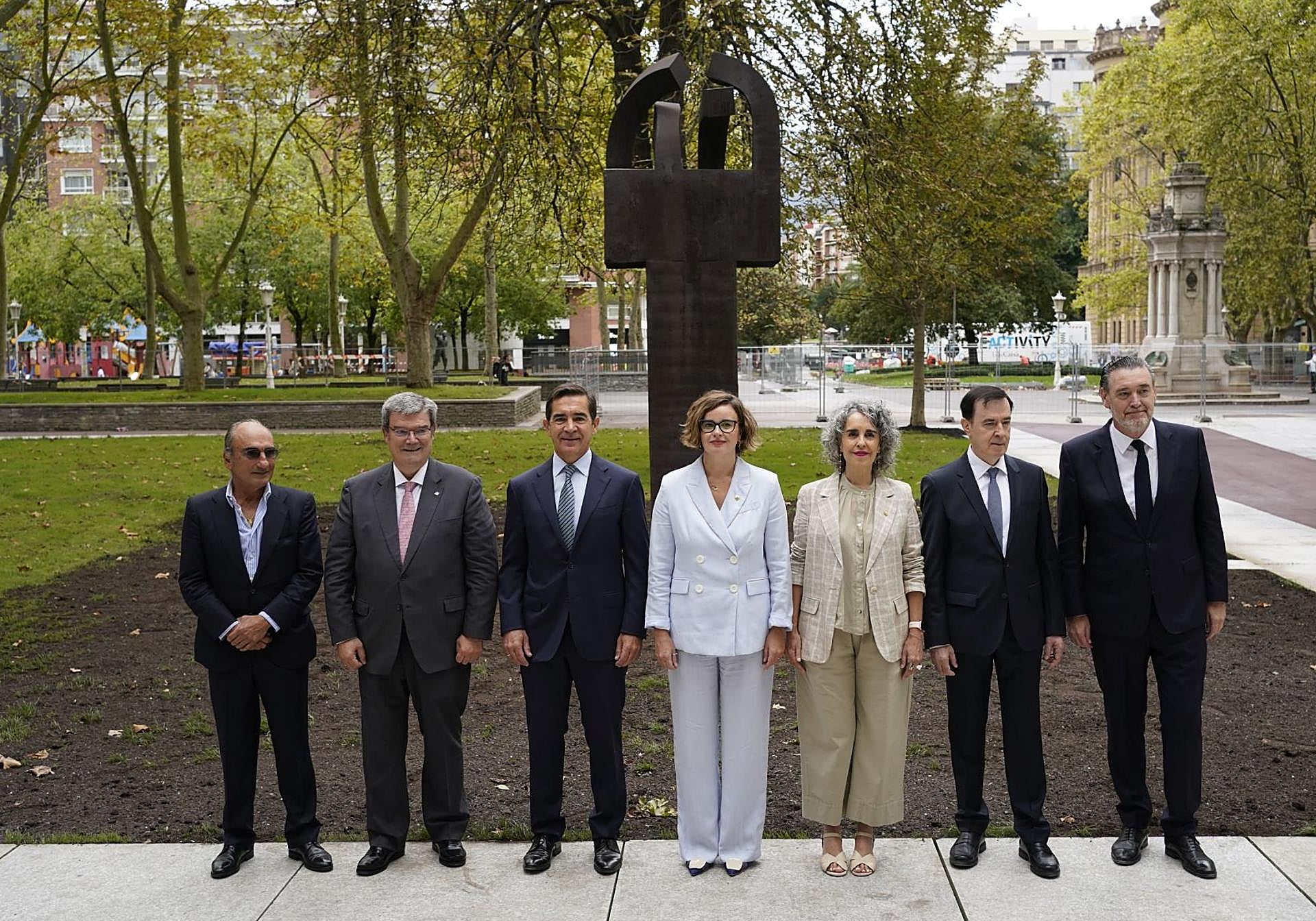 El anfitrión de la cita, Miguel Zugaza, expresó su creencia en que el 'Elogio del hierro III' «vuelve a convertir esta plaza en un lugar de encuentros, donde la ciudadanía se relaciona con el arte y la arquitectura». «Y creo que todos estamos de acuerdo en destacar la labor del señor Iñigo Otero, el gruista que hizo que, con una facilidad enorme, esta pieza de 18 toneladas se desplazara con total seguridad desde Chillida Leku y se posara aquí».