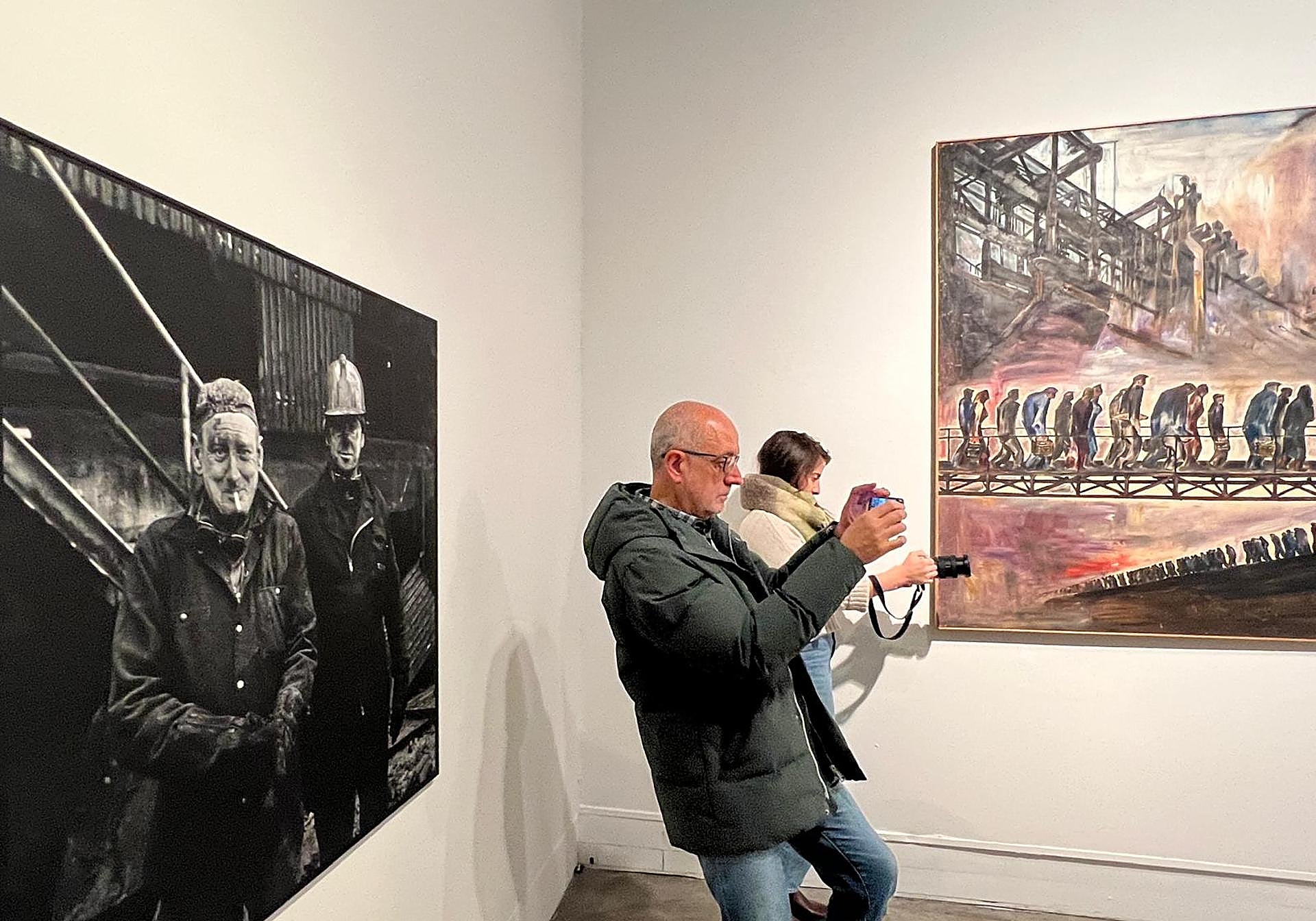 Otro núcleo fuerte de la exposición lo conforman las obras que rescatan el factor humano. En 'Compañeros de hierro (1995)', Fidel Raso retrata a trabajadores que miran a cámara con una mezcla de cansancio y orgullo, mientras que las fotografías de Iñaki Izquierdo o Juantxu Rodríguez capturan la vida obrera sin romantizarla: manos manchadas, ropa gastada, conversaciones al borde de una máquina. Son escenas de una cotidianidad que ya no existe pero que, vistas hoy, funcionan casi como un álbum colectivo.