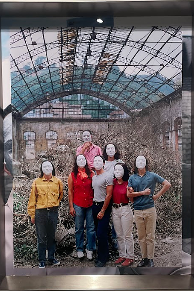 Entre las piezas más conmovedoras del recorrido destaca 'Yo estuve allí (1993)', de Eduardo Sourrouille, una obra que funciona como una despedida silenciosa de la antigua Compañía de Maderas de Bilbao. En sus fotografías, figuras enmascaradas posan entre las ruinas de la fábrica, como si quisieran proteger lo que está a punto de desaparecer.