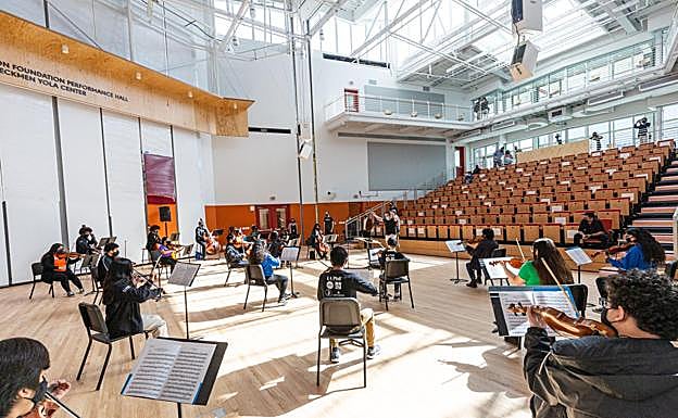 Lo terminó hace solo cuatro años, en plena pandemia, ya con 93 años. El Youth Orchestra Los Angeles (YOLA) se inauguró el 21 de octubre de 2021, en el castigado barrio de Inglewood, a menos de cinco kilómetros del aeropuerto. Se enamoró del proyecto del venezolano Gustavo Dudamel, director de la Filarmónica de Los Angeles, quien a su vez se inspiró en el programa de orquestas infantiles que transformó generaciones en Venezuela. No era un conservatorio elitista, pero Gehry les construyó un auditorio de lujo con lo que le dieron, un antiguo banco transformado en un Burger King.