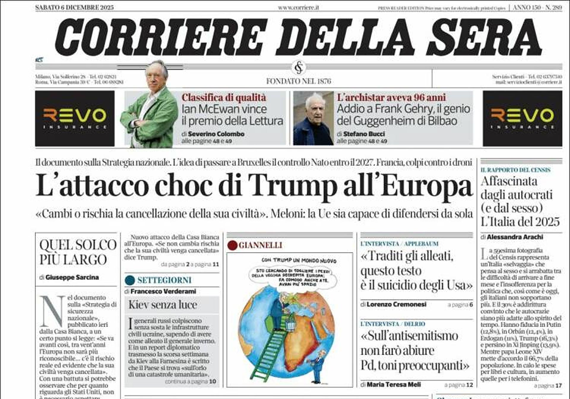 En Italia, tanto 'Corriere della Sera' como 'La Stampa' lo destacan en sus primeras. 'Adiós a Frank Gehry, el genio del Guggenheim de Bilbao', dice el primero. 'Adiós a Frank Gehry, el artista de la arquitectura', apunta el segundo.