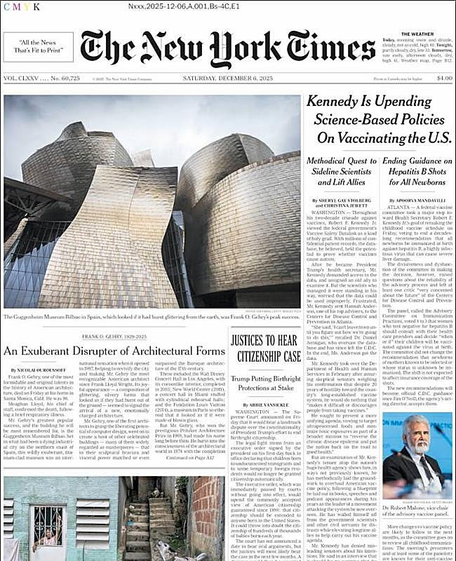 Todos los grandes periódicos norteamericanos recogen en sus portadas la noticia de la muerte del arquitecto canadiense