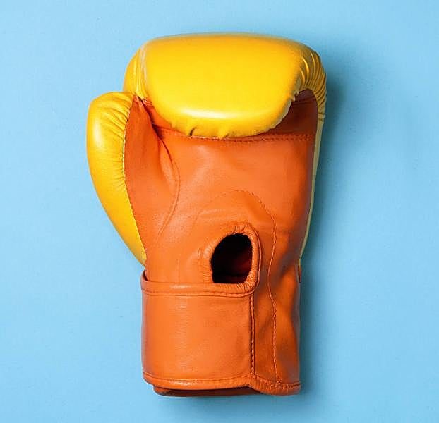Aquí, algunas obras están presentadas con los elementos que se usaron para crearlas. Como la ilustración de un artículo sobre Donald Trump, que es su rostro representado por un guante de boxeo pintado de naranja, su cara, y amarillo, el pelo. «La idea surgió del propio título del texto, 'Después del golpe'. Aquí se ve mi forma de hacer». La traducción, de nuevo, «de conceptos a imágenes, jugando con asociaciones y códigos que la gente reconoce con más facilidad de lo que pensamos».