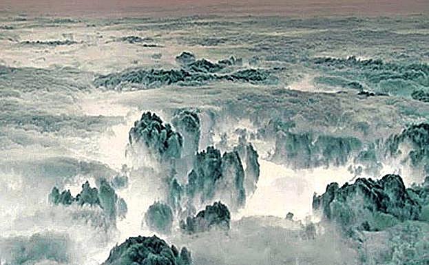 La fotógrafa interviene las obras coloreándolas por medios digitales, según explica, para potenciar el ciclo hidrológico dentro de su imaginario, desplegado dentro de un proyecto mayor denominado 'Campectonia', formado por cuatro series. «Las pinto para potenciar el ciclo hidrológico, pero siempre preservando su frescura», indica. Inevitablemente, el diálogo desemboca en el cambio climático y nuestra irresponsable capacidad para modificar el medio. Ni siquiera esas esponjosas formas que salpican el cielo se han librado de la intervención suicida del hombre. Varela nos recuerda que en 1947 se inyectó hielo seco en un huracán para debilitarlo, iniciativa que deparó catastróficas consecuencias.