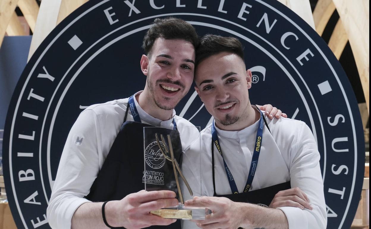 Javier Sanz y Juan Sahuquillo se han convertido, en la última jornada del congreso gastronómico Madrid Fusión Alimentos de España, en los cocineros revelación de 2021, entrando a formar parte de un selecto grupo de cocineros españoles. Una premio que recibieron de rodillas y abrazados como dos amigos. «Es lo que somos desde los cinco años y es el sueño que hemos tenido desde que cocinábamos desde bien chicos», dice un emocionado Javier con los ojos llenos de lágrimas. Tan emocionado o más estaba Juan, que confesaba que «este premio es la recompensa a muchos años luchando por un sueño».