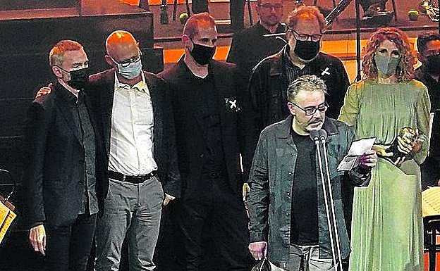 Tras recibir el Max al espectáculo teatral, se mostraba escéptico sobre la posibilidad de ganar el galardón a la autoría. «No creo, no creo...», repetía Alfredo Sanzol, con la manzana dorada en la mano. Pero ayer era su día de suerte. 'El bar que se tragó a todos los españoles', del Centro Dramático Nacional, hizo doblete. «Esto da mucha fuerza. Esta es, además, una obra de resistencia. La planteo como un homenaje a una generación que en los 60 luchó por las libertades, y tengo presente a mi padre, que dejó el sacerdocio y respiraba la ilusión del Concilio Vaticano II», decía al final de la gala.