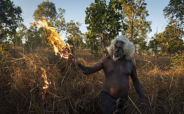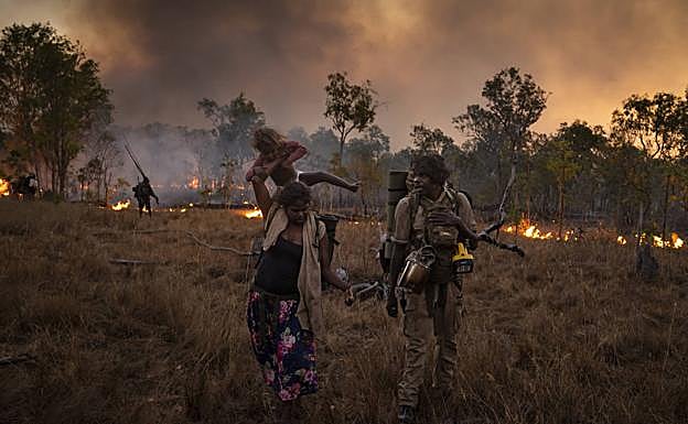 En la foto, que ha sido distinguida con el premio de 'Historia del año', aparece Conrad Maralngurra, un anciano nawarddeken, quemando hierba para proteger a la comunidad. El fuego nocturno se extinguirá de forma natural cuando baje la temperatura y aumente el nivel de humedad.