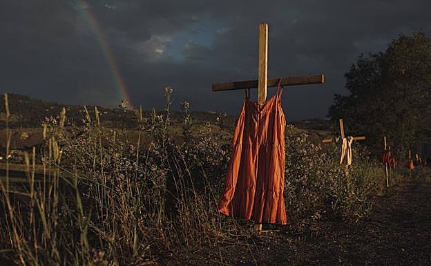 Vestidos rojos colgados en cruces a lo largo de una carretera conmemora a los niños que murieron en la Escuela Residencial India de Kamloops, una institución creada para acoger a los niños indígenas en el siglo XIX. En 2021 se detectaron 215 tumbas de menores que murieron como consecuencia de maltrato. Tras una investigación, se estimó que de los más de 150.000 niños que atravesaron las puertas de la Escuela, al menos 4.100 alumnos fallecieron.