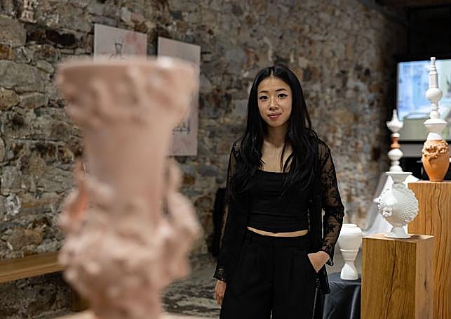 La cerámica es la disciplina en la que trabaja esta autora. Ahora bien, tal y como sucede con muchos de aquellos que trabajan hoy con el barro, las convenciones están para derribarlas. El espectador se encontrará con una obra situada entre el arte del barro, el diseño y la escultura. La creadora nos demuestra que su pasión confesa por los objetos trasciende la visión tradicional de la utilería y aspira a alzarse, literalmente, sobre las limitaciones físicas del horno y ganar altura.