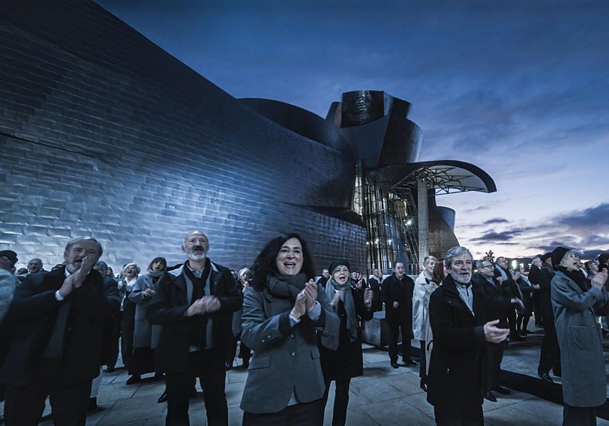 300 voces amateur cantan a coro un villancico desde el Guggenheim