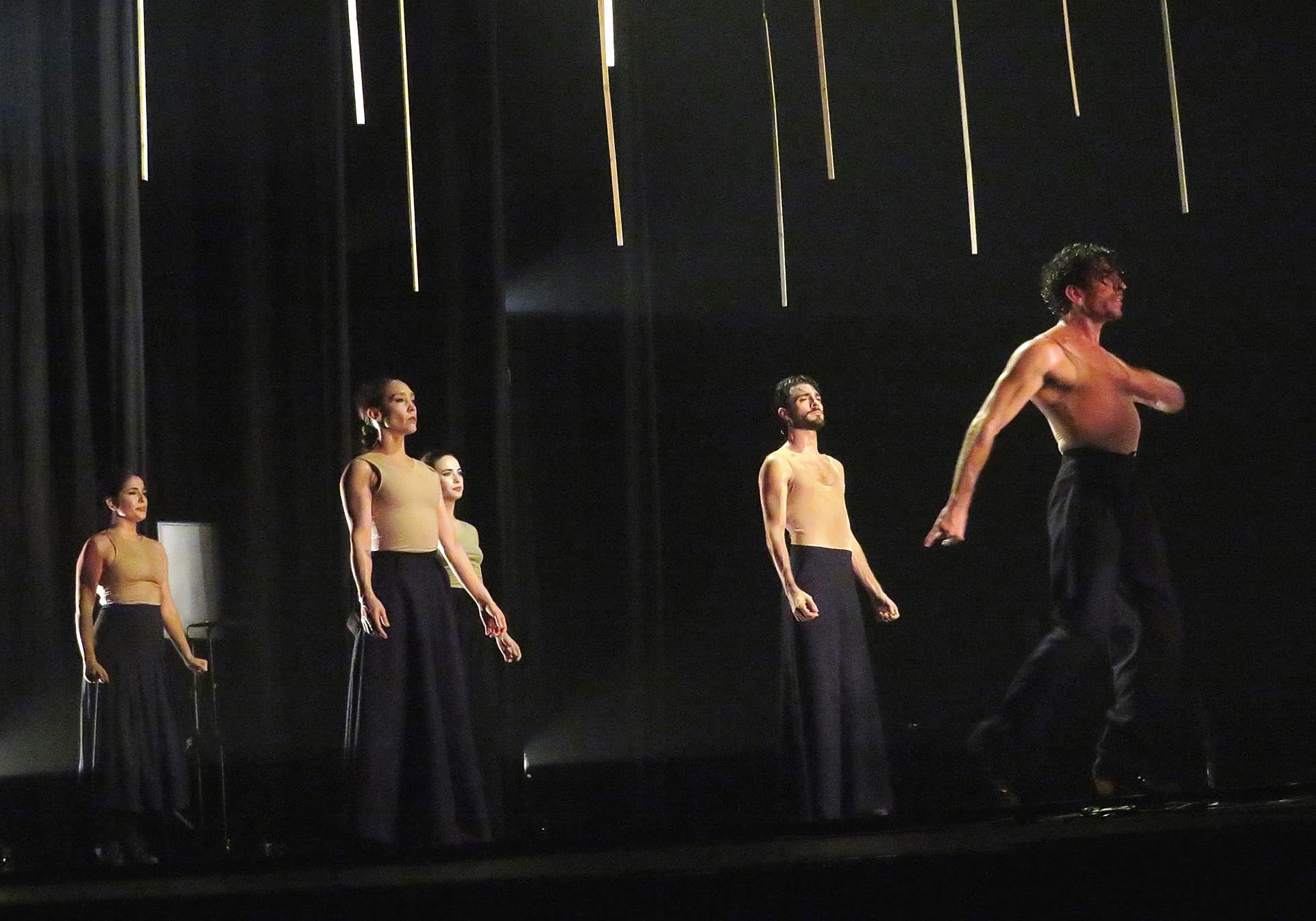 Y camino del primer bar, Óscar Cine seguía poniendo por las nubes lo que habíamos visto. Vale, démosle un poco de razón y analicemos el show como lo que fue, un ballet moderno: los cinco bailarines (tres chicas y dos chicos) evolucionaron técnicos, armónicos, curvilíneos, contorsionistas, físicos y místicos. Y de la música se puede decir que estuvo casi mejor, desde el cantaor de atrás, David Lagos (recio y avanzado, con el jondo actualizado que practican hoy día José de los Camarones, Perrate e incluso un Niño de Elche con facultades extra) hasta los dos músicos, Isidora Oryan al chelo enérgico y la voz Madredeus (por cierto, hoy sábado el fundador de Madredeus Rodrigo Leao actuará en el mismo Teatro Barakaldo con gran banda) y Juan M. Jiménez a los saxos y la alboka, siempre explorando el free jazz, el post-folklore y hasta el exotismo de Gato Barbieri.