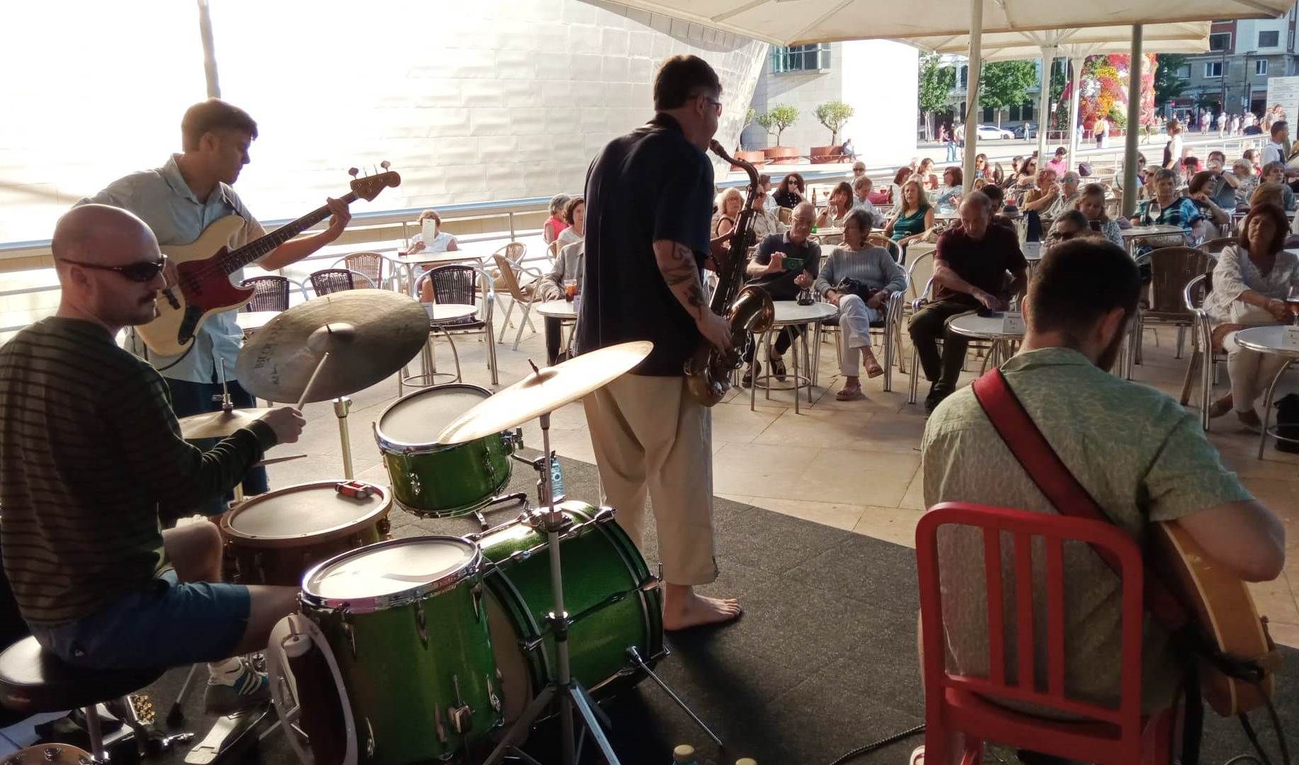 El cuarteto de raigambre navarra tocó más funk danzón que jazz al uso en su calurosa cita estival en una terraza del museo que volvió a agotar el aforo