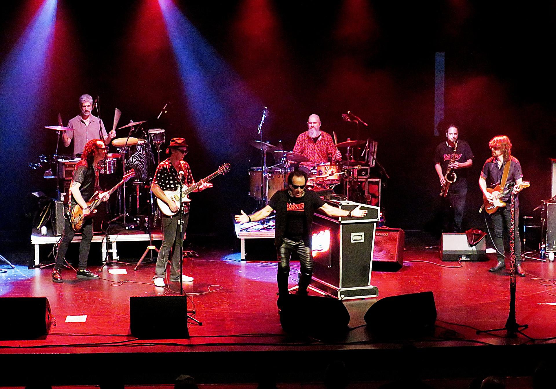 En septeto con saxo, en la gira del 50º aniversario de la banda, Johnny Burning rocanroleó ansioso durante dos horas sin tacha, aspavientos ni rutinas